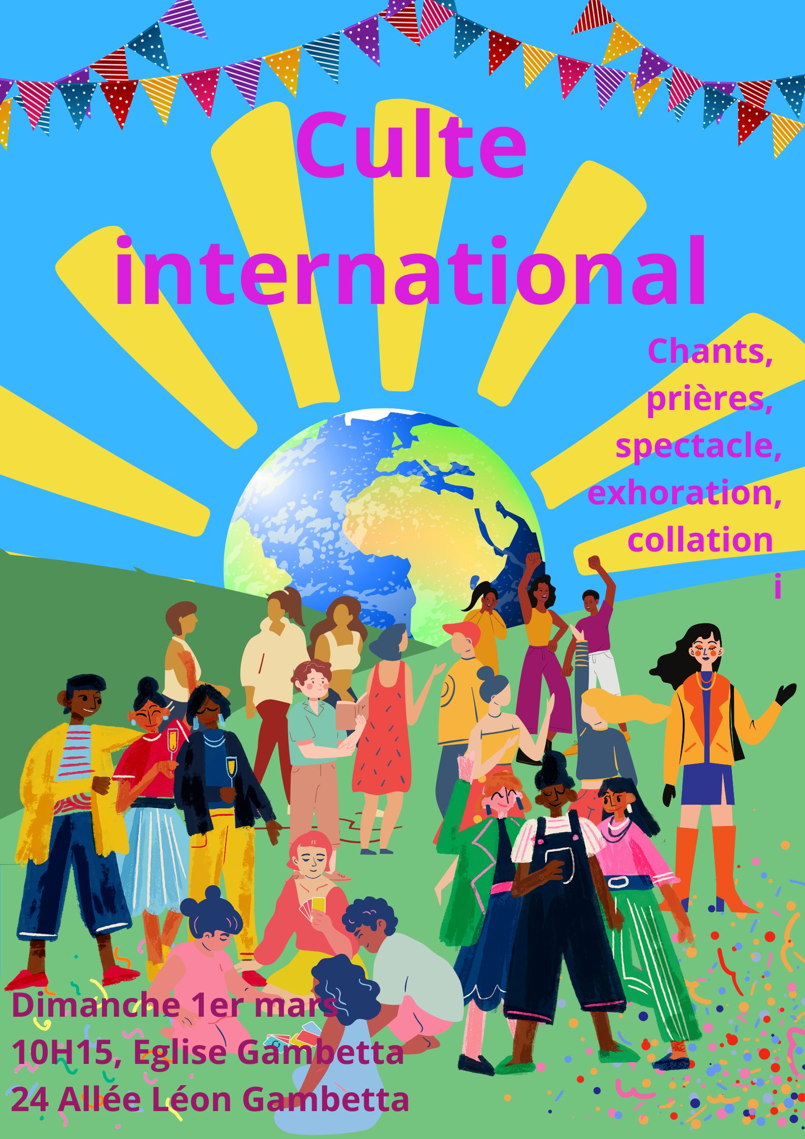 1er mars : Culte international et spectacle humoristique 22 février 202622 février 2026Ad Culte festif pour célébrer Dieu dans la diversité des cultures, avec un spectacle qui nous invite autant au rire qu’à la réflexion et à l’accueil au nom du Christ des histoires de vie différentes de toutes nos immigrations.