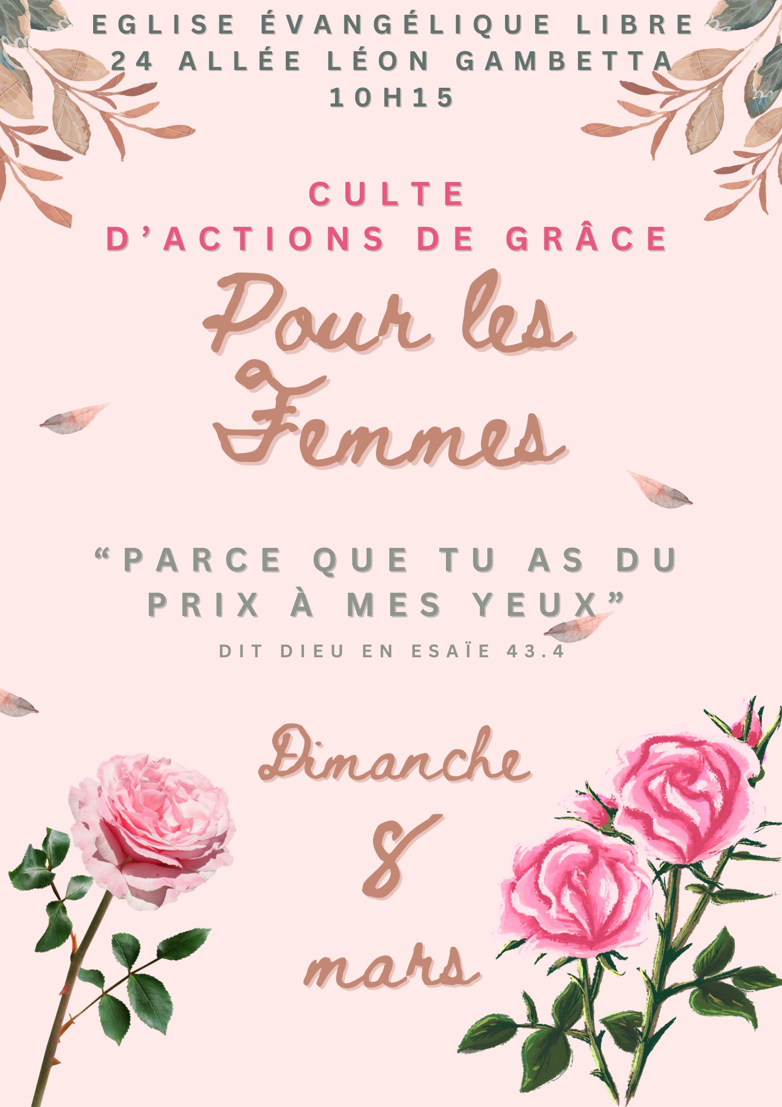 8 mars : Culte de reconnaissance pour les femmes
